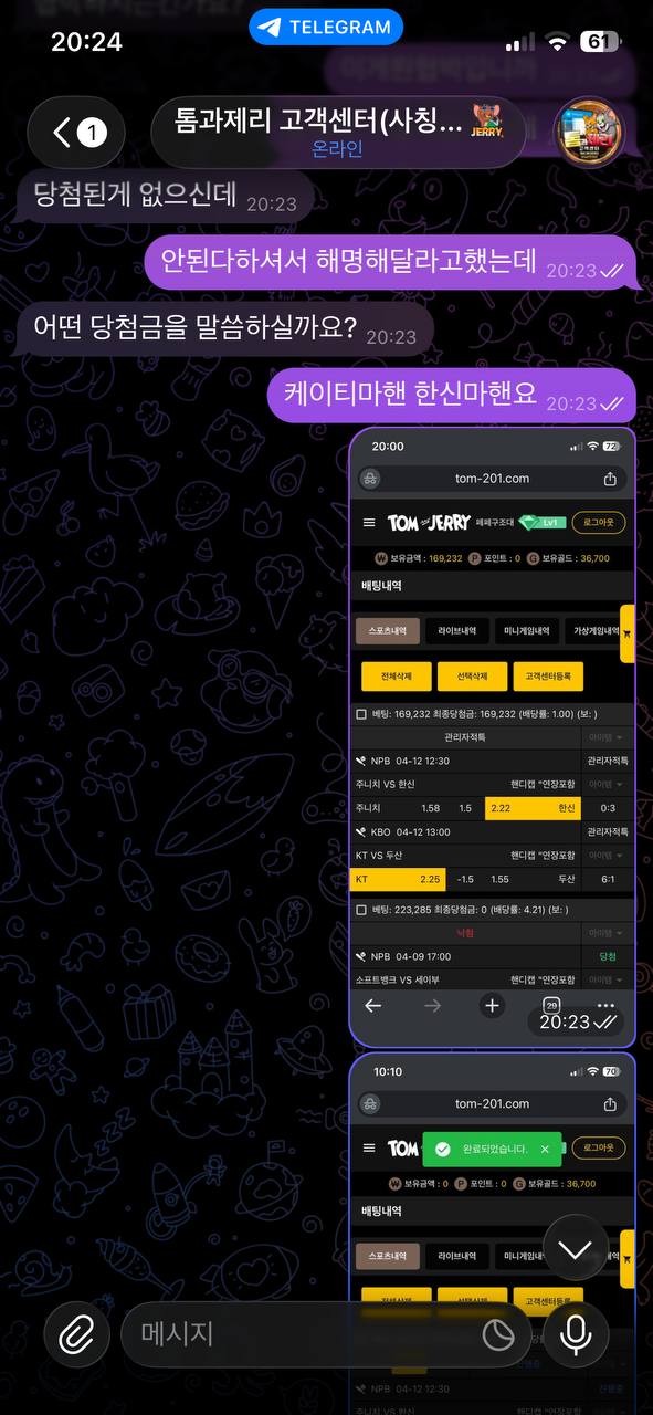 톰과제리 배당하락 이야기하면서 먹튀함 작성자 정보 입실픽스터쪽지보내기 메일보내기 자기소개 아이디로 검색 전체게시물쪽지보내기 메일보내기 자기소개 아이디로 검색 전체게시물 작성 작성일 2026.04.14 12:37 컨텐츠 정보 17 조회 목록 관리 글검색 답글 쓰기 본문 사이트 이름 톰과제리 사이트 주소 tom-201.com 피해날짜 4월14일 피해금액 84만원 피해 내용 전형적인 먹튀 사이트 특징인 양방 드립, 배당 하락 경기 배팅 드립칩니다 소개해준 총판한테 연락했는데 총판도 비아냥 거리고 사이트측도 연락해서 환전 안주냐니까 저보고 오히려 협박하냐고 따지는 아주 못된 악질패거리니 절대 이용 ㄴㄴ요 관련자료 댓글 0 등록된 댓글이 없습니다. Select File Upload File 목록 관리 글검색 답글 쓰기